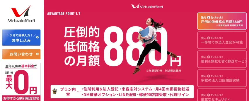 「なるべく料金を抑えたい」「一等地の住所がいい」そんな方に向けて、この記事では私自身が調べて比較した月1,000円以下のプランがあるバーチャルオフィスを紹介します。