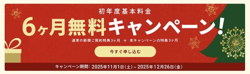 新規契約時に初年度の基本料金が6ヶ月分無料になるキャンペーンが実施されています。